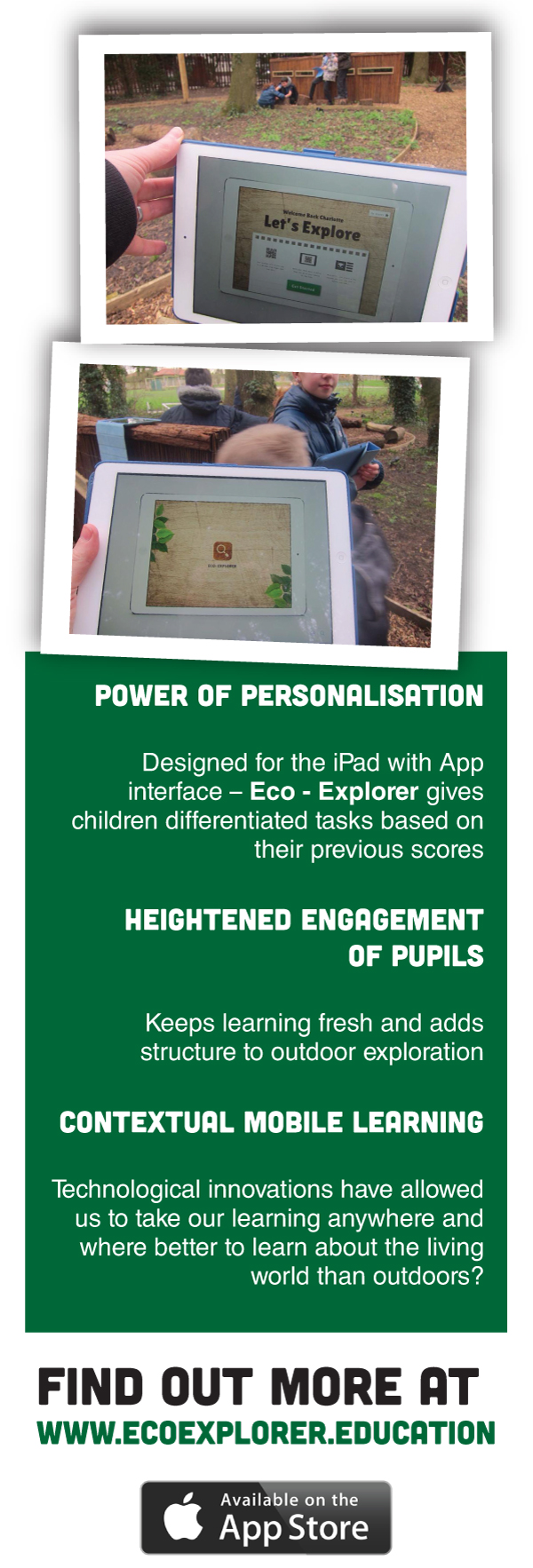 - Contextual mobile learning makes Eco-Explorer a strikingly effective learning tool.